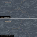 Notre Carte à épingles en 100% coton est imprimée en FineArt-Druck avec de l'encre à base d'eau. Ce procédé d'impression durable permet une netteté exceptionnelle dans la reproduction des lignes fines, des textes et des détails. En même temps, nous préservons ainsi le caractère naturel de la toile. Ces caractéristiques de qualité essentielles soulignent la haute qualité de notre Carte à épingles – ce que nos clients apprécient particulièrement.