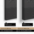 Vergleich der Rahmentiefe unser Weltkarten Pinn-Leinwand, zwischen Slim-Line mit 2 cm Tiefe und Gallery-Line mit 4 cm Tiefe