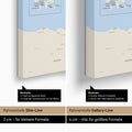 Vergleich der Rahmentiefe unser Weltkarten Pinn-Leinwand, zwischen Slim-Line mit 2 cm Tiefe und Gallery-Line mit 4 cm Tiefe