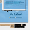 Faites de la carte du monde une pièce unique – avec une personnalisation. Choisissez entre la citation de Bourdain ou donnez-nous votre citation préférée, que nous imprimerons en bas à gauche sur la carte du monde. Pour une personnalité maximale, jusqu'à quatre motifs sont disponibles en bas à droite pour inscrire vos noms sur la carte. Nous offrons également aux entreprises la possibilité d'imprimer leur logo moyennant un petit supplément.