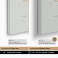 Vergleich der Rahmentiefe unser Weltkarten Pinn-Leinwand, zwischen Slim-Line mit 2 cm Tiefe und Gallery-Line mit 4 cm Tiefe